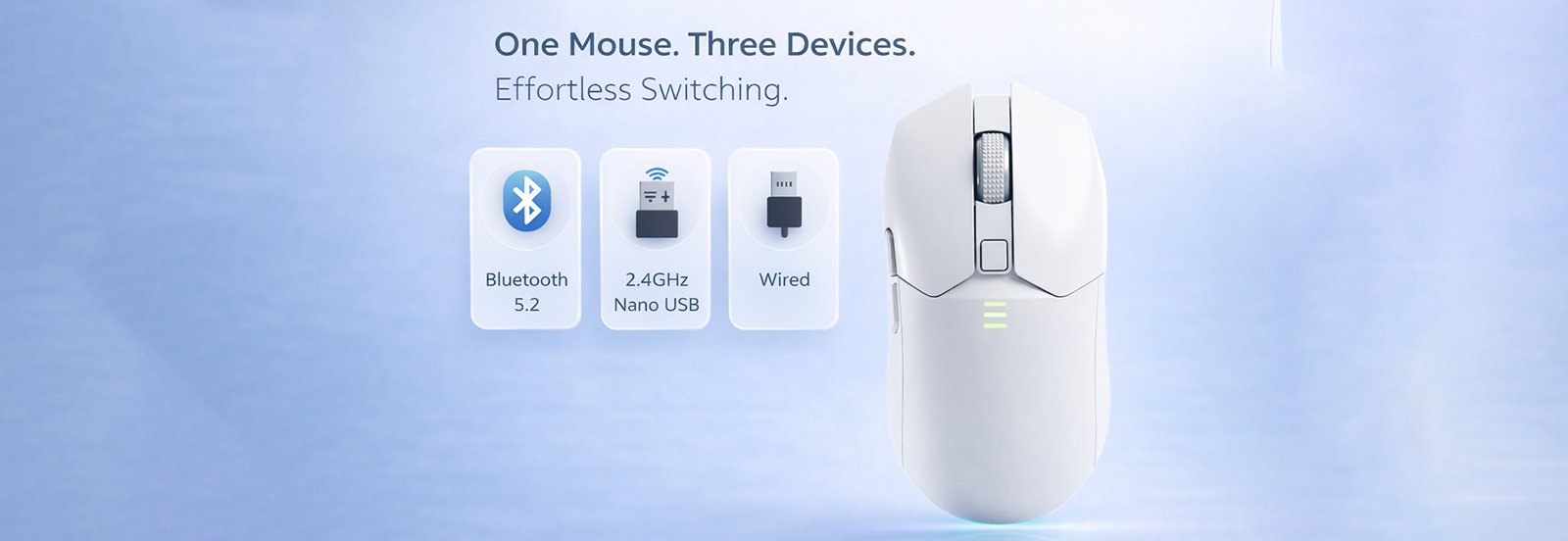 | Connectivity Modes | Bluetooth 5.2, 2.4GHz Nano USB, Wired |
