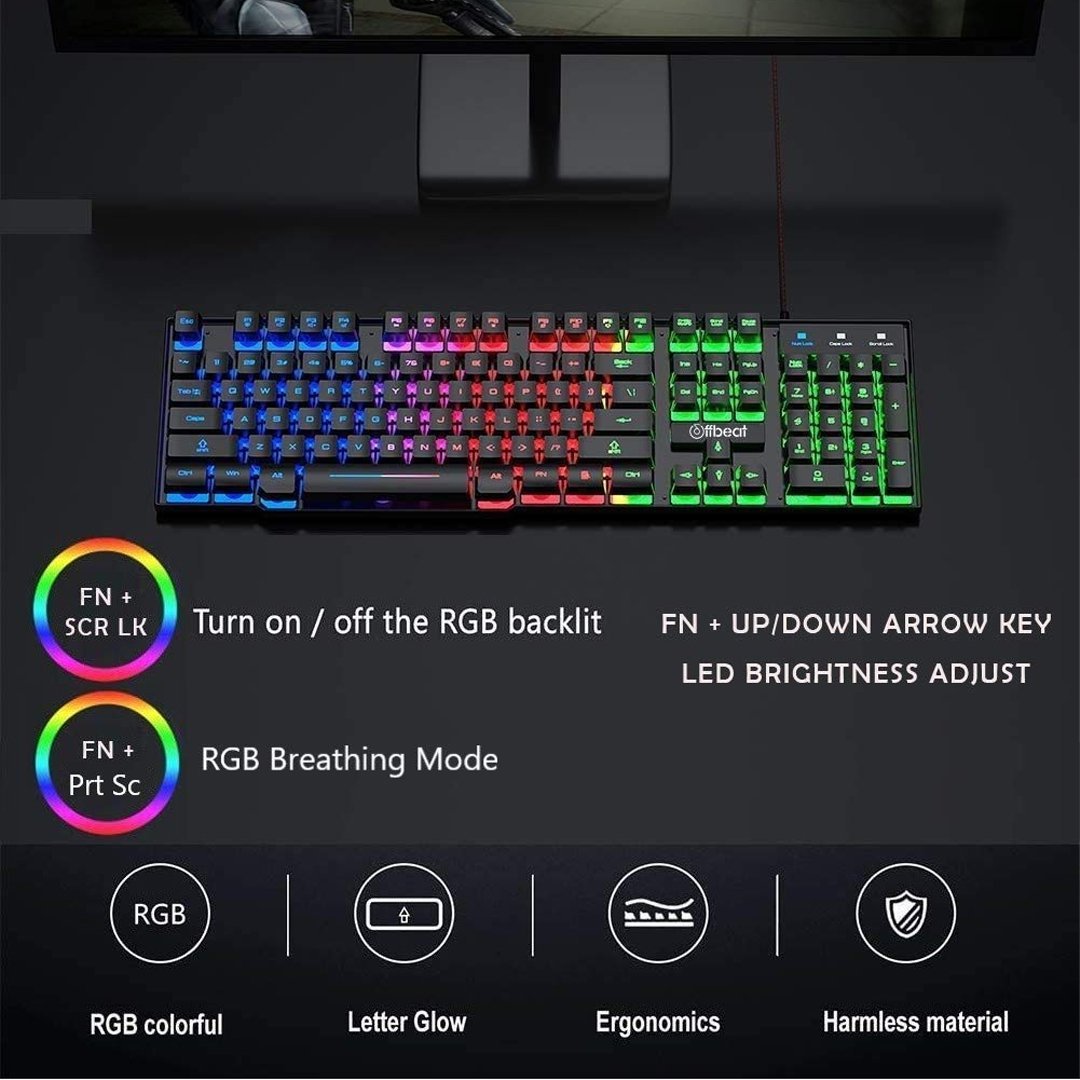 Offbeat® – Slayer RGB Backlit Mechanical Feel Like Wired Gaming Keyboard 19 Anti Ghost Keys and 3200 DPI Gaming 6D Button Mouse Combo, for Computer, Laptop, PC